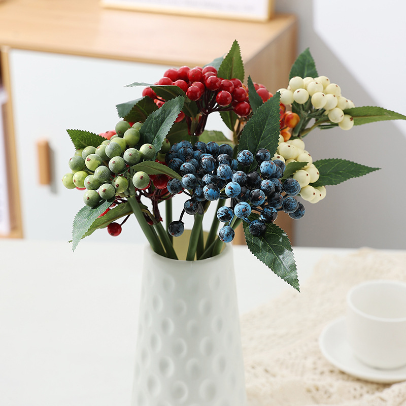 红果发财果厂家直销仿真冬青果短枝红果客厅摆件家居装饰插花配件