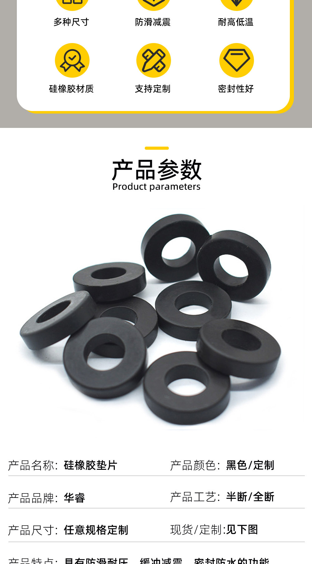 滑り止めシリカゲルガスケット黒色自己接着ワッシャー耐摩耗耐圧シリカゲルフットパッド食品級強力バックゴムガスケット