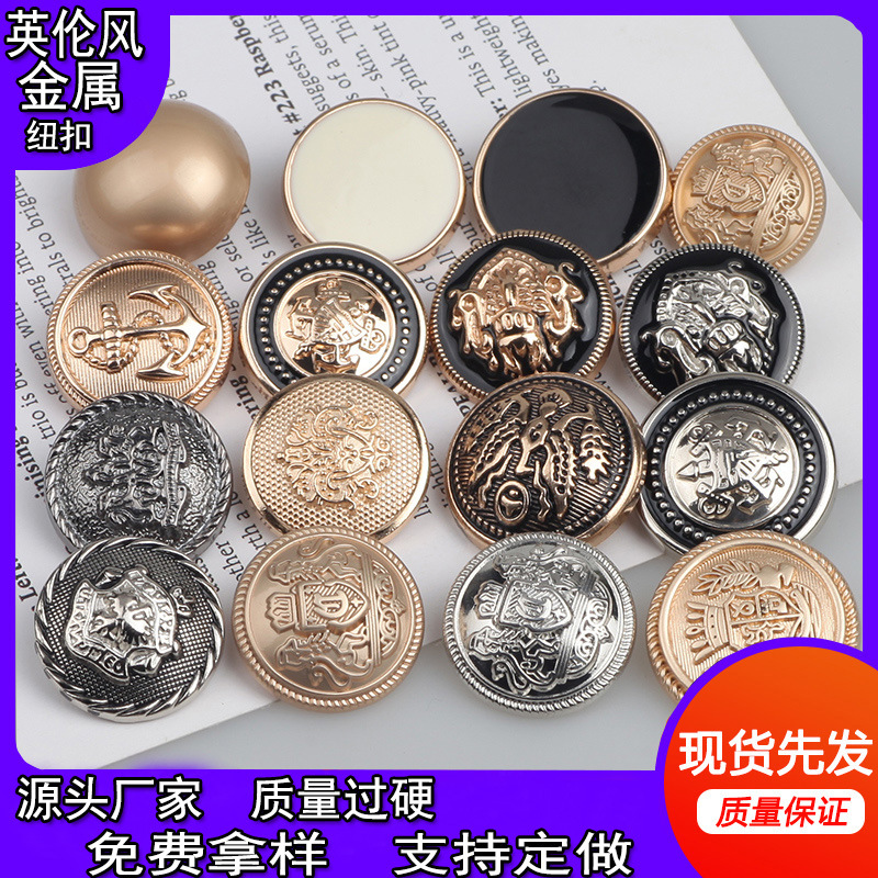 皇冠英伦金属小香风大衣衣服风衣外套复古合金服装扣子纽扣高级感