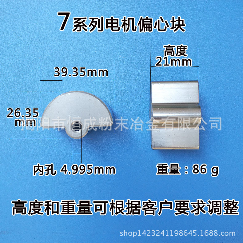 此款应用于微电机震动马达配件等。(偏心轮)利用其高动能的特性,与微电机配合形成非平衡旋转,产生高频率振动,是通讯手机、医疗器械等高端产品振动功能必不可少的“振源”,同时也是玩具、电动牙刷等民用产品振动功能的执行器件。