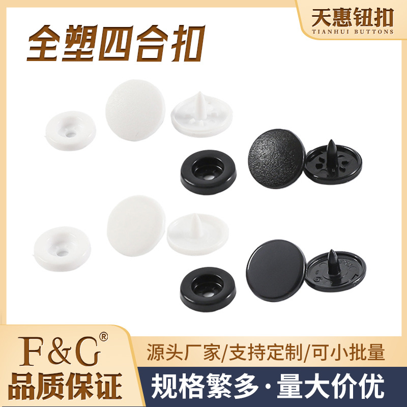 按材质分有铁四合扣、铜四合扣,塑料四合扣,尼龙四合扣等,