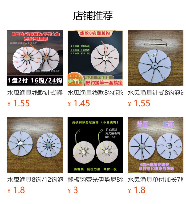 伊势尼鬼爪翻板钩8爪12爪夹饼钩饵饼钩糠饼钩鲢鳙爆炸钩渔具批发