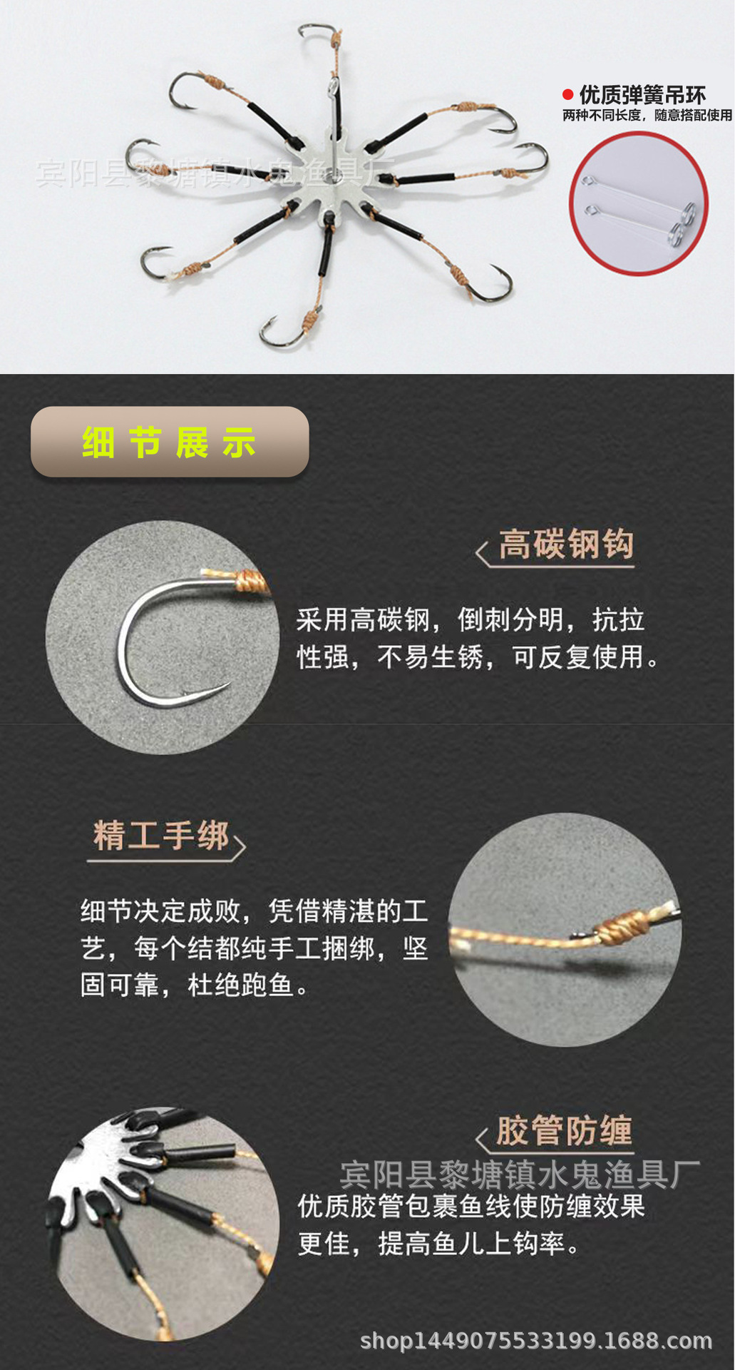 老釣手の子釣り糸、ダブルフック、強力な馬糸、鋭利な釣り針、手作業で丁寧に結ばれた仕掛け、釣り針、釣り道具、アウトドア用品
