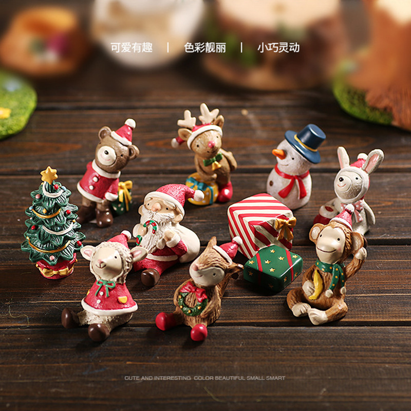 クリスマスかわいい手作り装飾品サンタクロース動物装飾デスクトップ車樹脂小さな装飾品工芸品