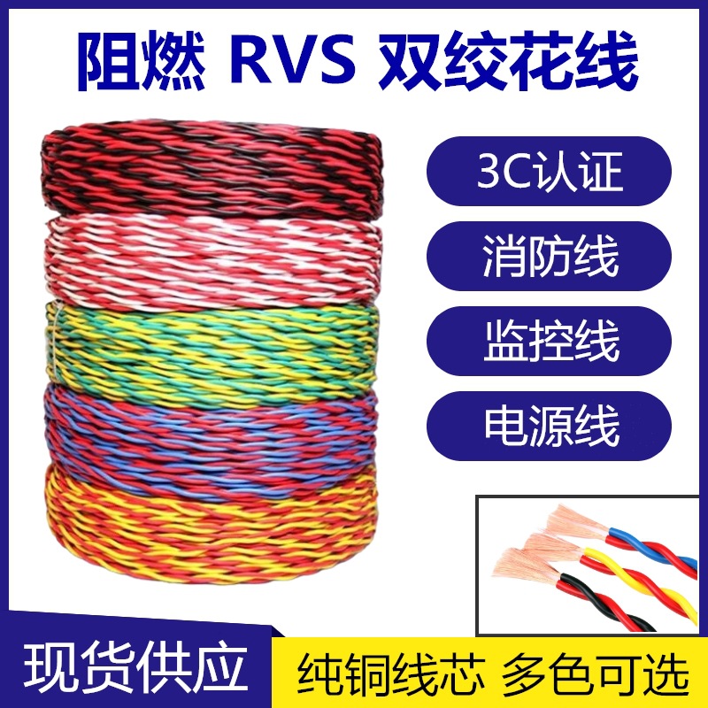 ツイストペア難燃性RVS2X0.5/0.75/1/1.5/2.5平方防火線純銅電源ケーブル