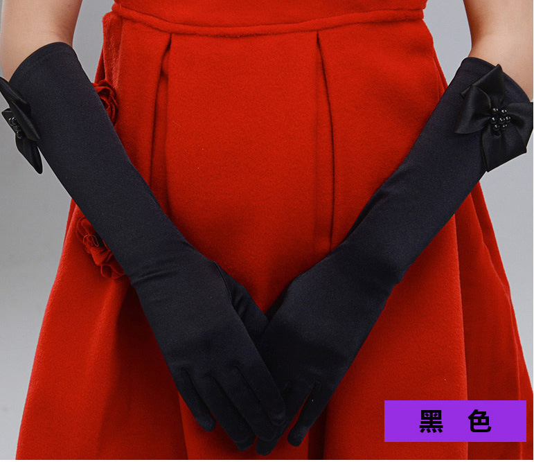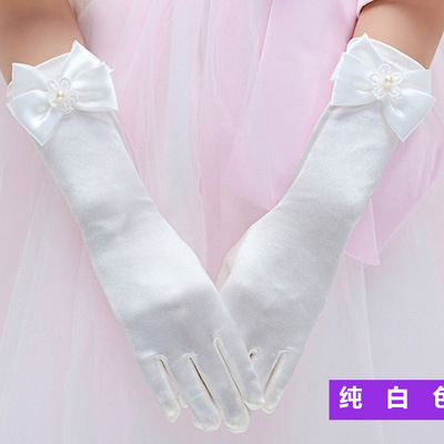女童舞蹈手套公主儿童蝴蝶结礼仪表演礼服长手套