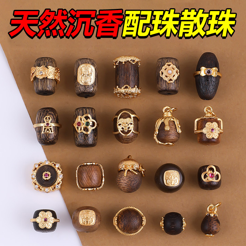 陆天然沉香散珠配珠文玩手串专用桶珠配饰手工材料单珠饰品小配件