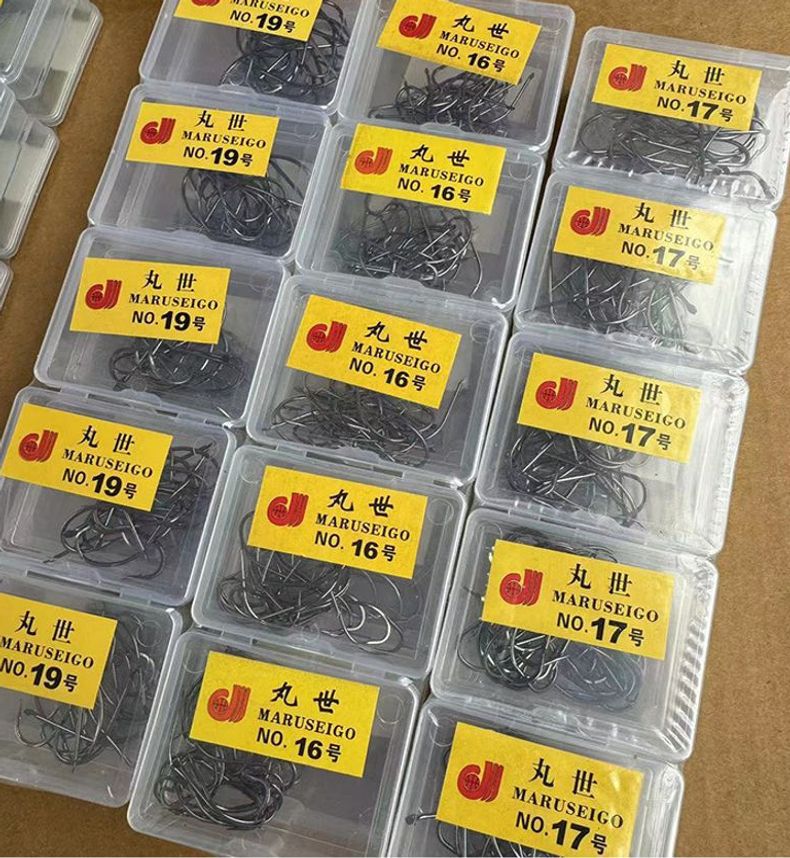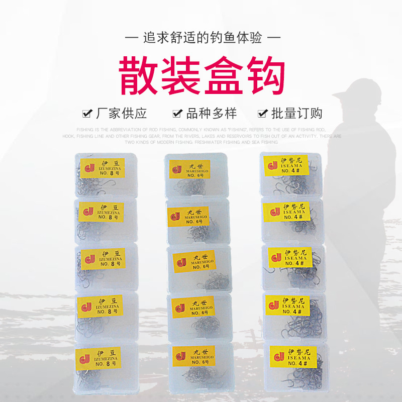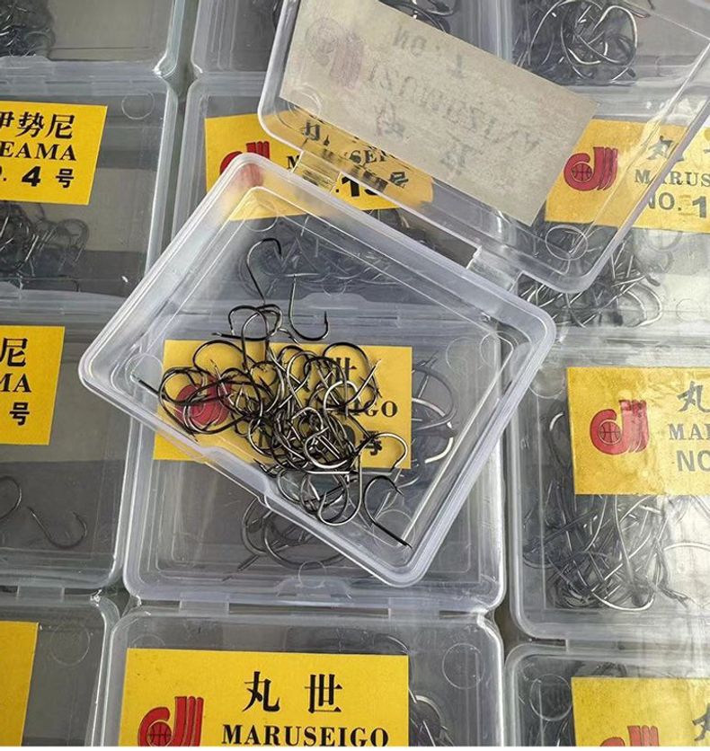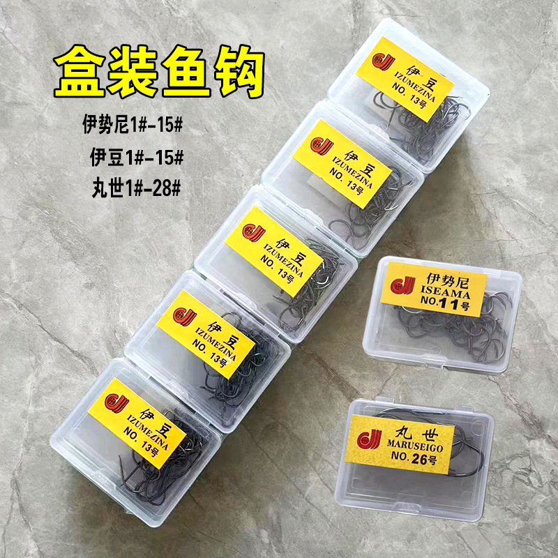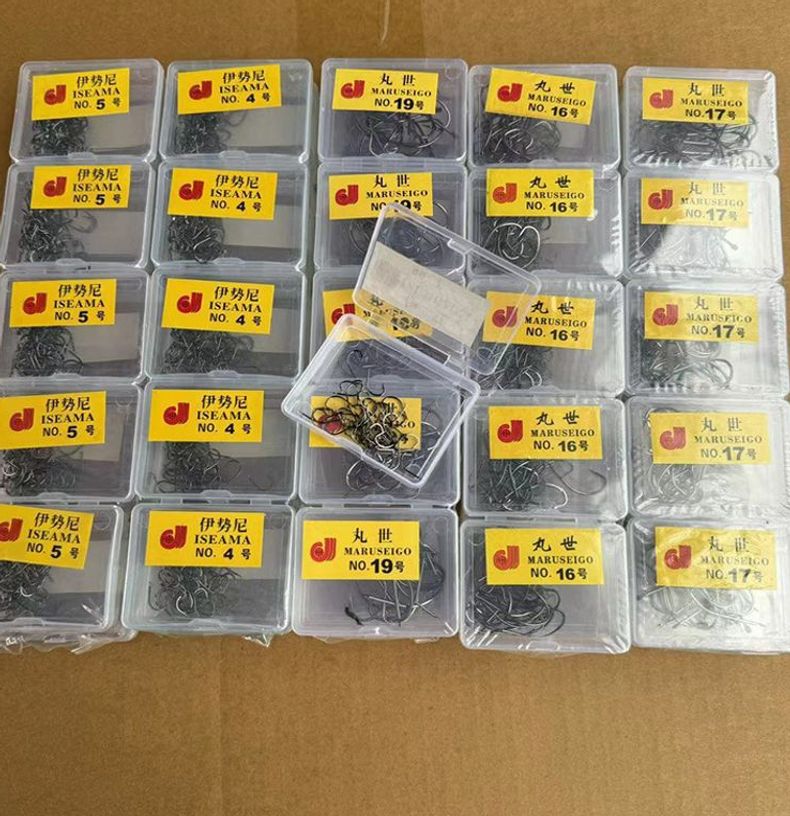 箱入り釣り針高炭素鋼伊勢尼伊豆にはとげ箱フック釣り部品卸売り丸世ばら売りフックがある