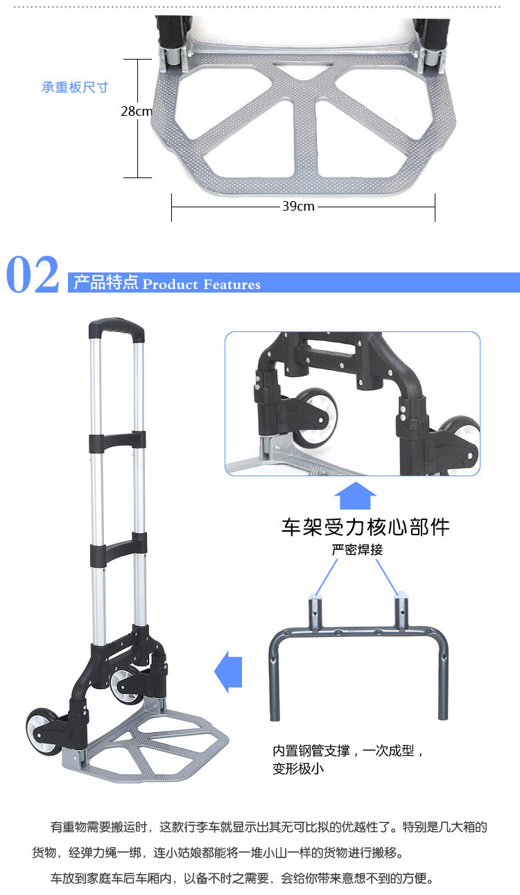 铝合金拉杆 铝合金底板 塑胶面板 PP轴承车轮