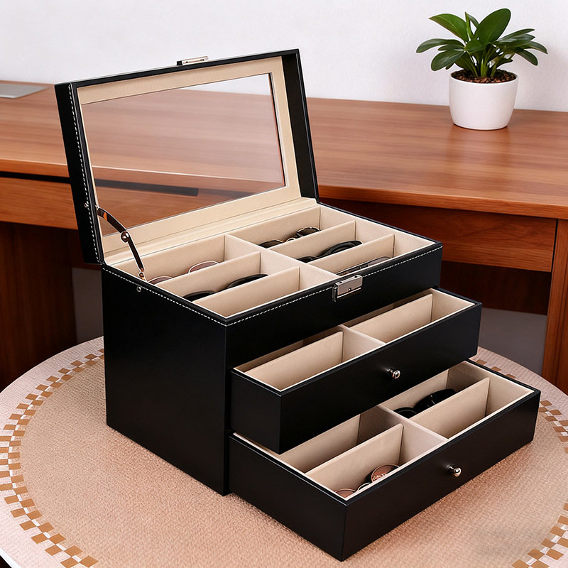 眼镜收纳盒多格皮质大容量家用高档太阳镜收藏展示盒眼镜手表盒