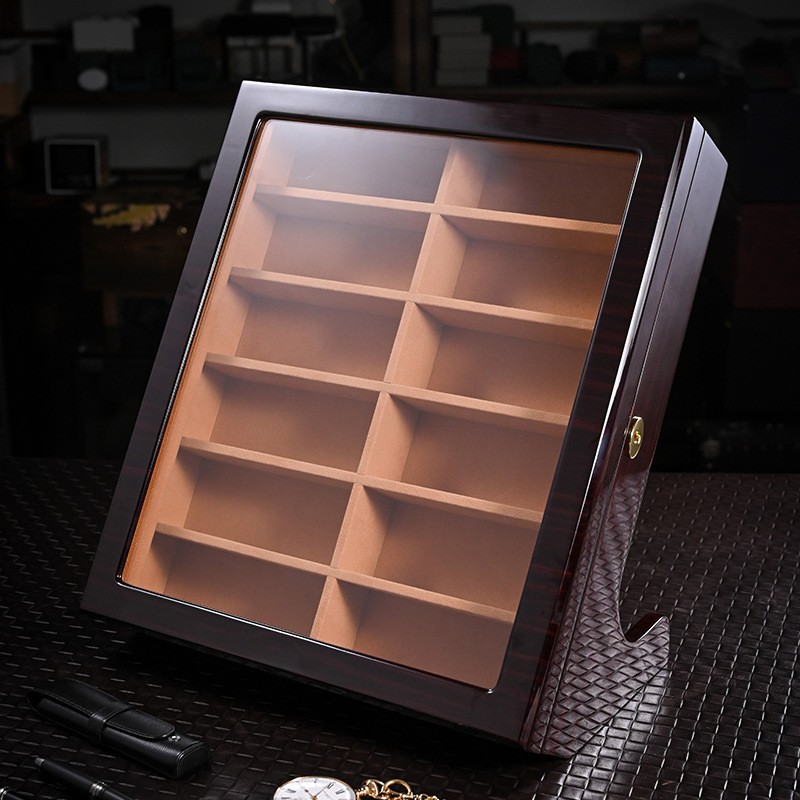 縦型眼鏡収納ケース12格サングラス展示ケースサングラス蝶ネクタイ収納ケース軽量贅沢サングラスケース木帯ロック