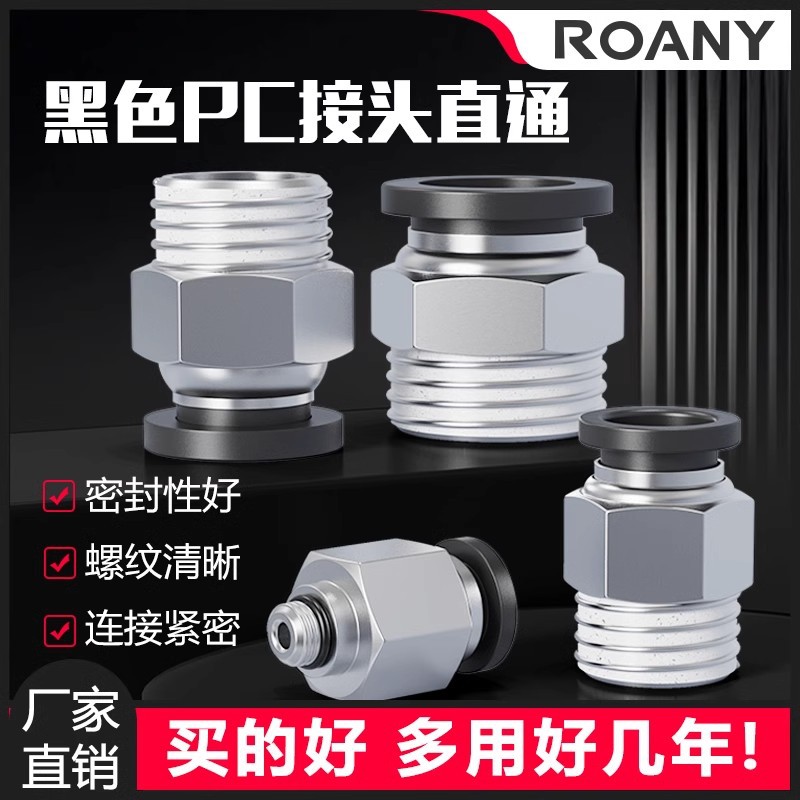 BLCH百灵スレッド直通PC外ネジ式空気圧PUチューブクイックコネクター、黒白クイックコネクター、在庫あり