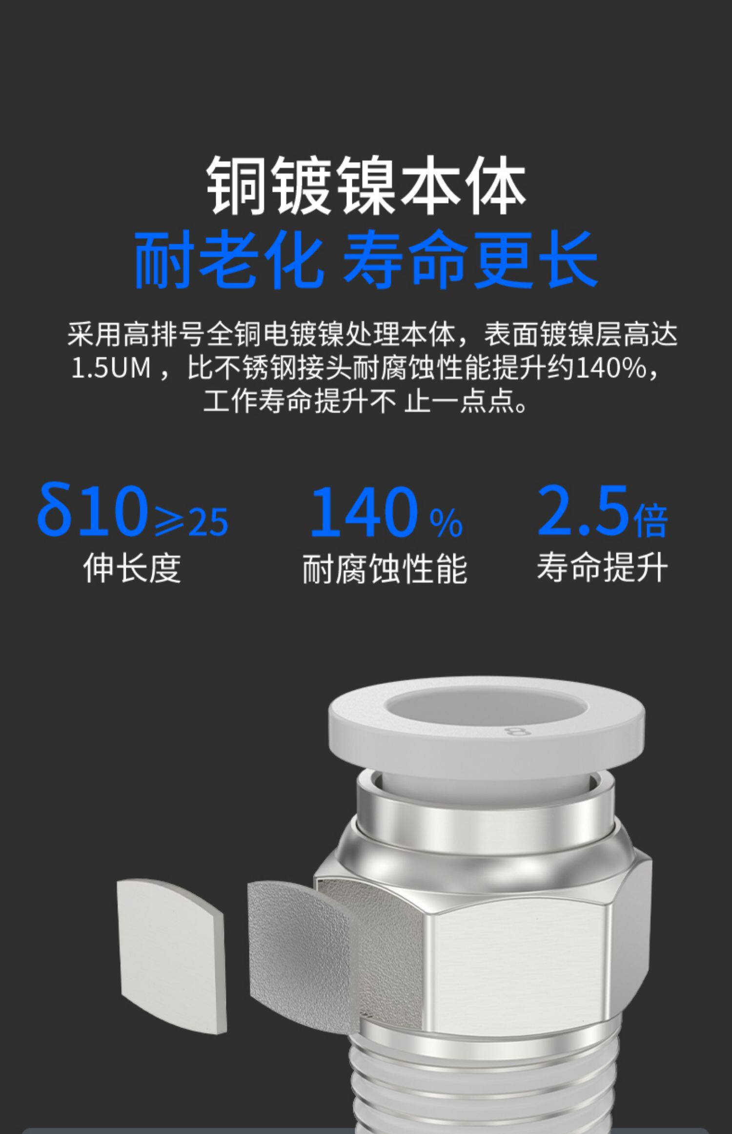 銅ホース気管気動快速継手PC8-02直通気動継手ワンタッチ接続6mm気動部品