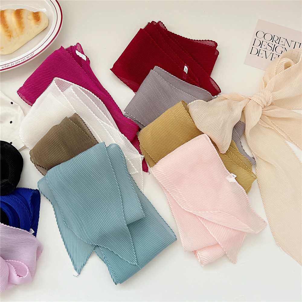 60純色のしわの小さい方のスカーフの女性の春秋韓国版の清新な通気性のファッションの百合の装飾の薄い糸のマフラー