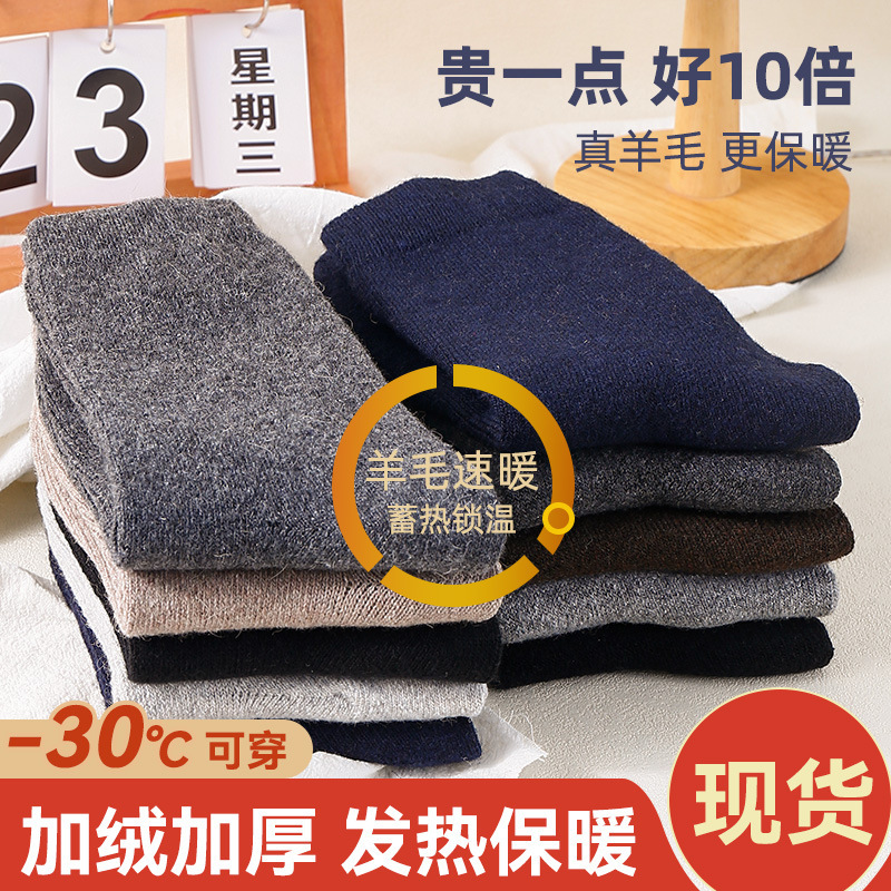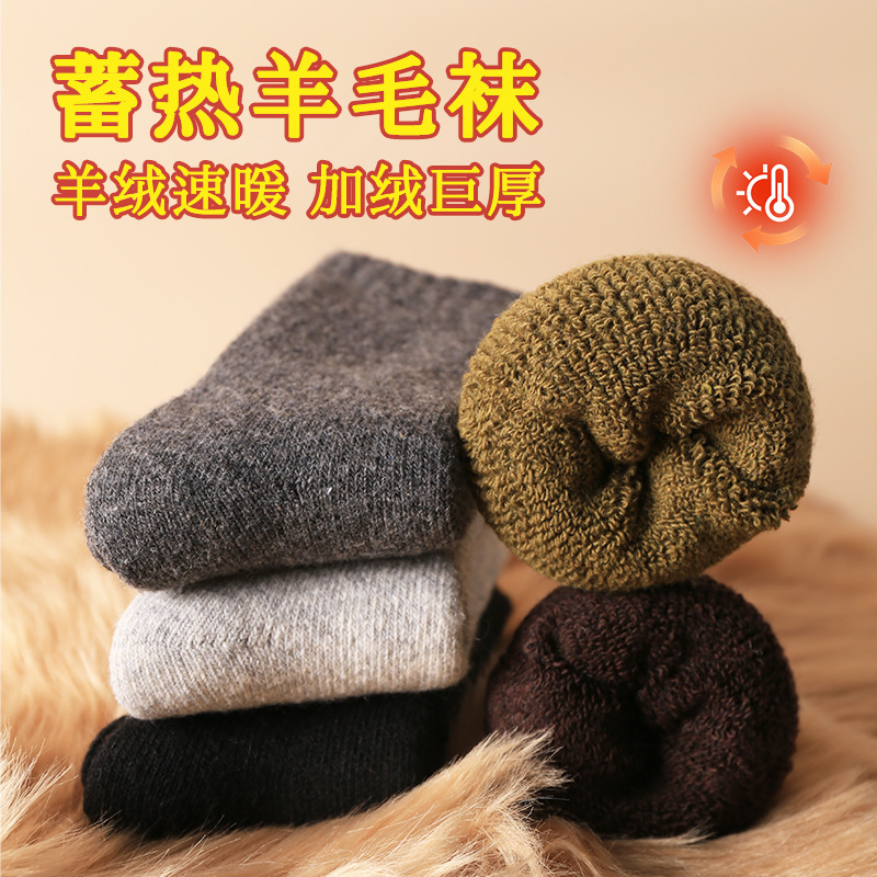 冬袜加厚羊毛袜子男款冬季纯色羊毛袜毛圈底中筒袜加厚男士地板袜