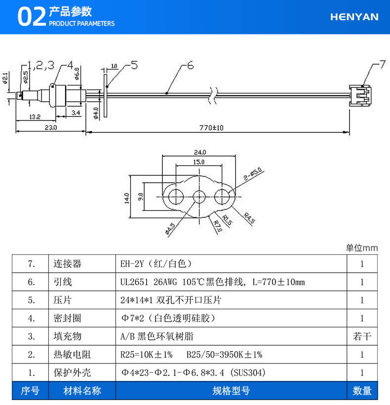 感温部品防水高精度サーミスタ水滴ヘッド空調温度水槽ntc温度センサ