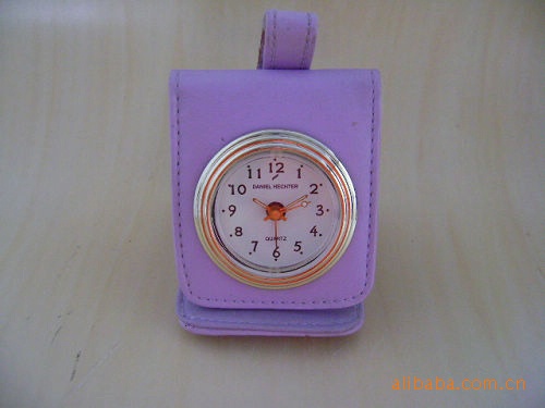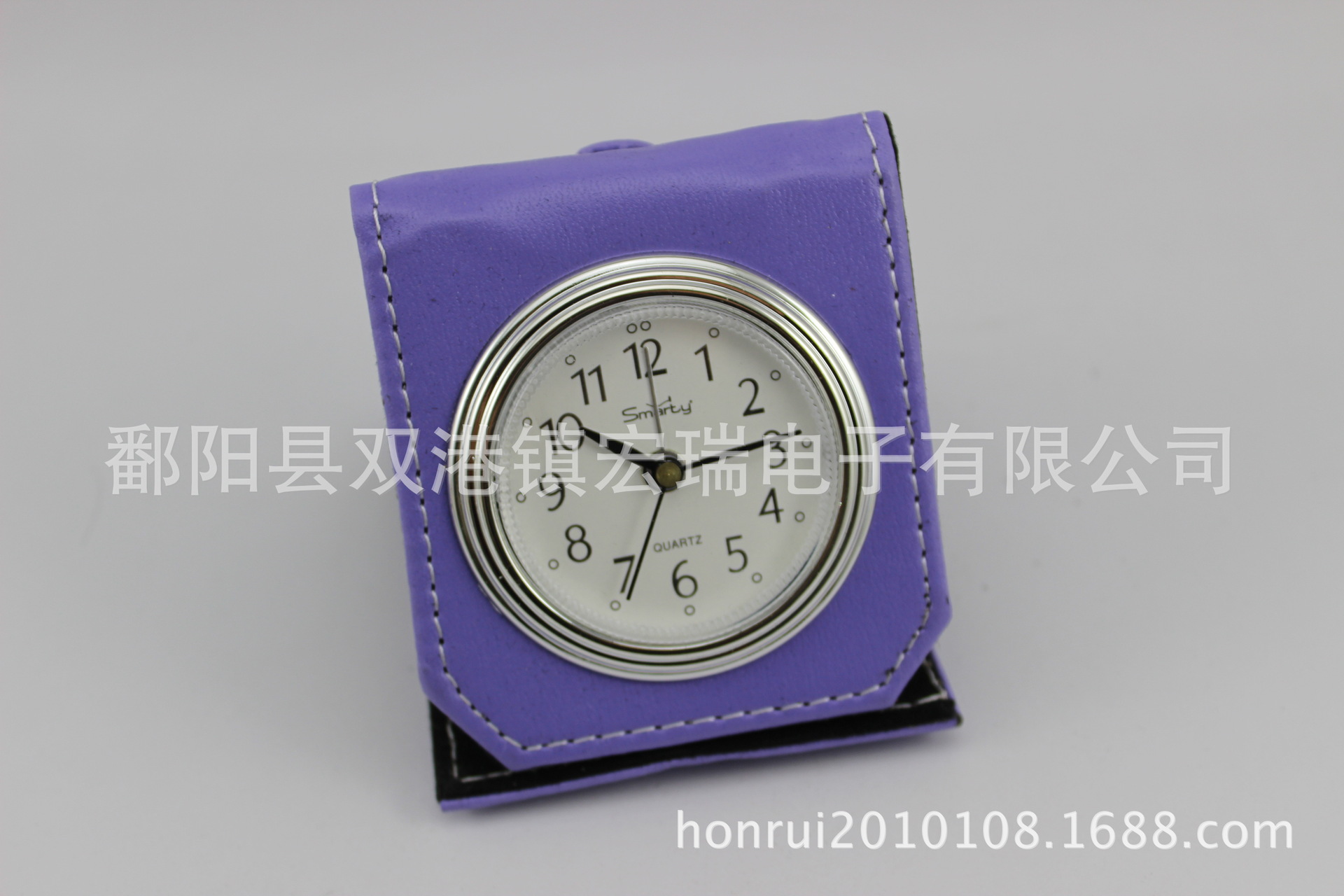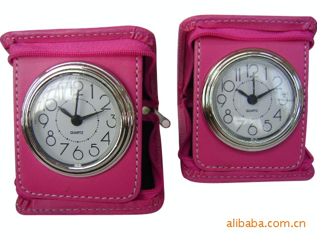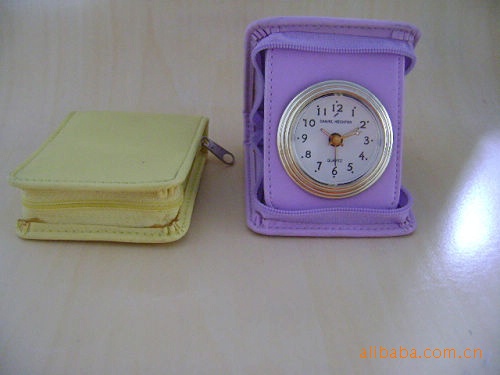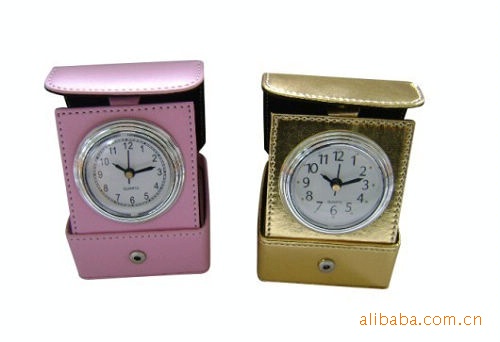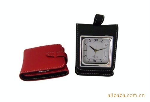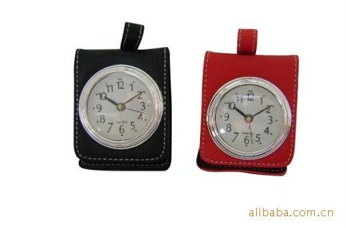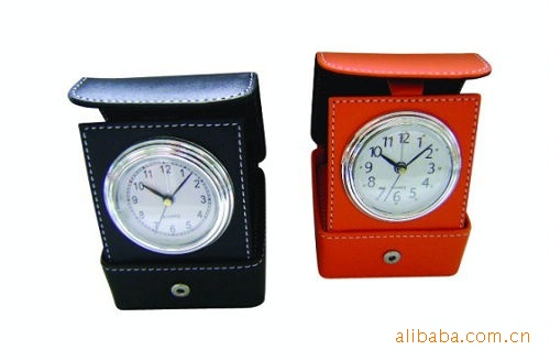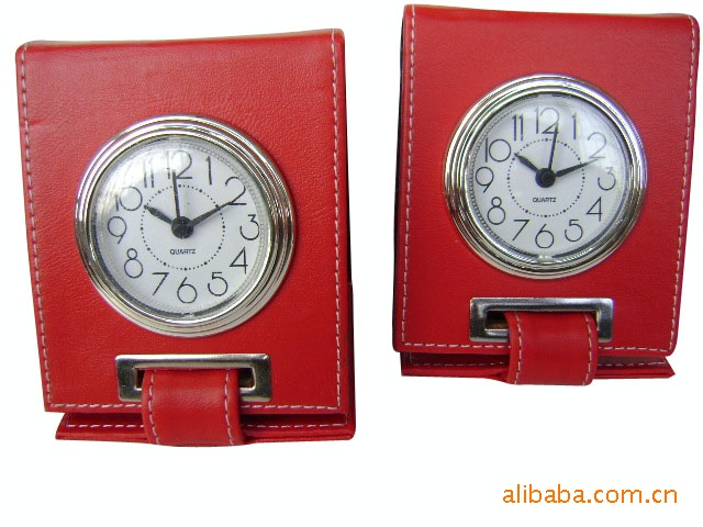 精品皮革旅行時計pu目覚まし時計ホテル専用模造皮目覚まし時計