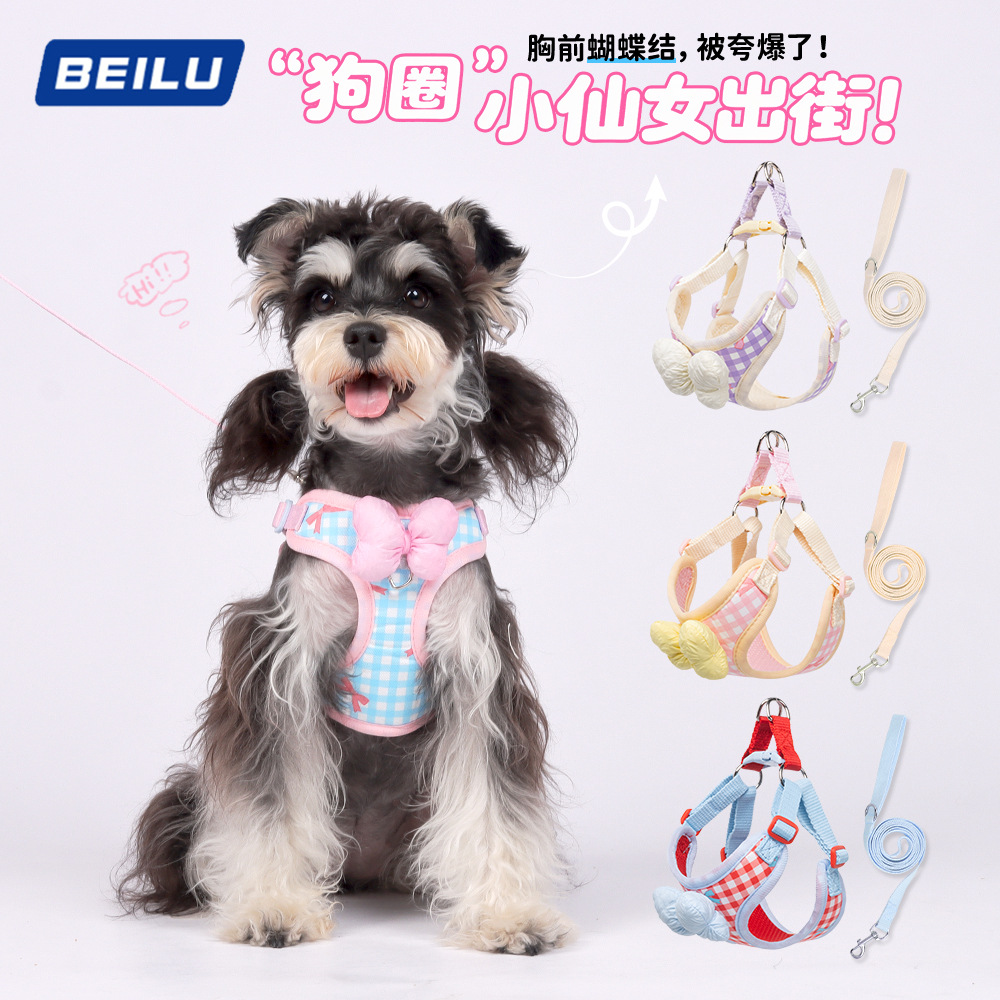 狗狗牵引绳小型犬胸背带遛狗绳背心式小型犬狗绳比熊遛狗绳子批发