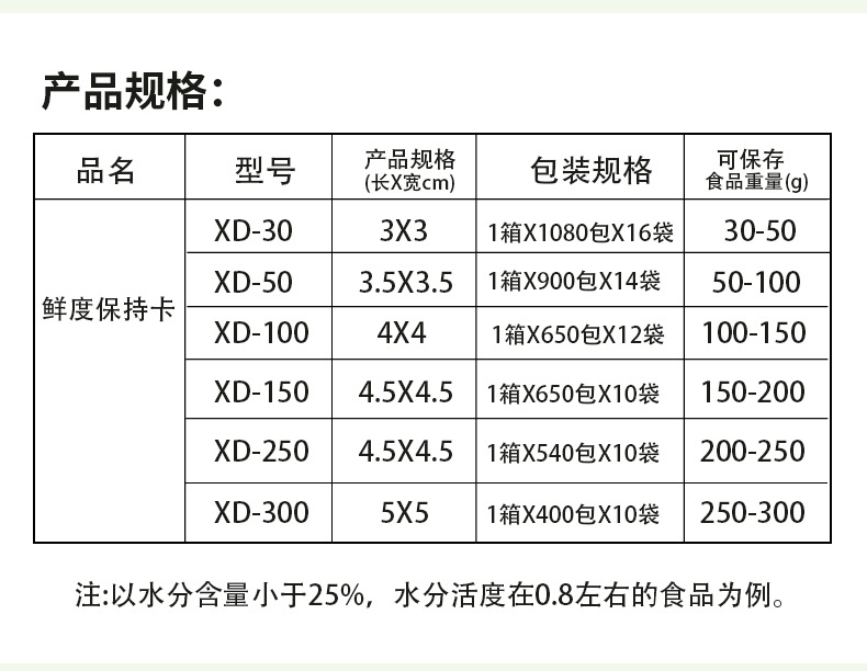 食品保鲜卡 月饼蛋黄酥专用保鲜剂30/50/100型片状保存保鲜卡批发