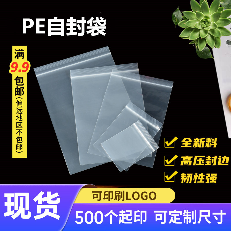 スポット卸売厚いpe自己封袋透明自己封袋食品級トランペット透明鎖骨包装袋