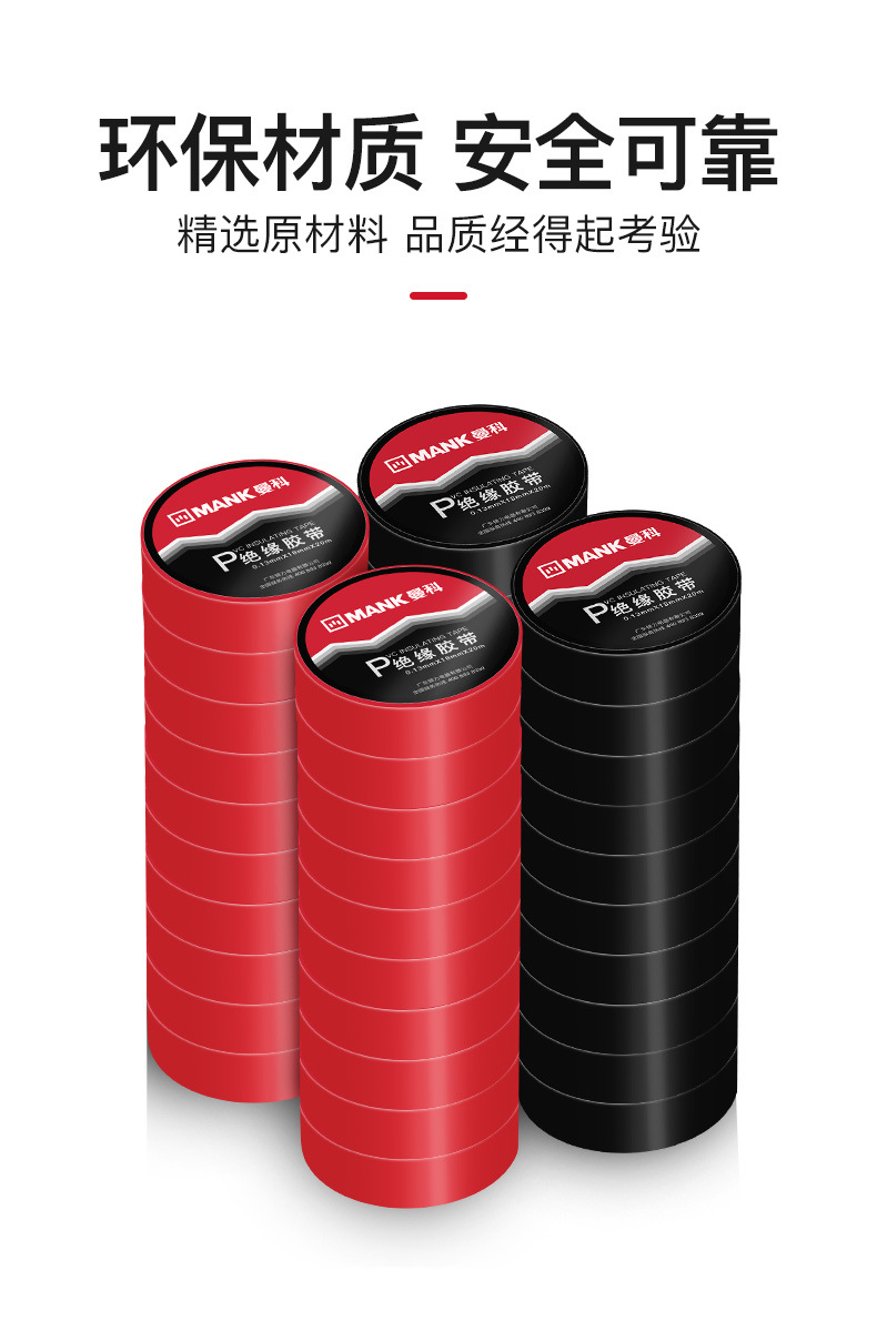 マンコ難燃性電気テープ絶縁テープPVC強力防水赤黒テープ20m高温耐性