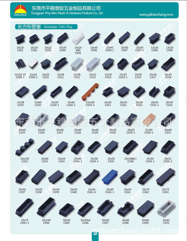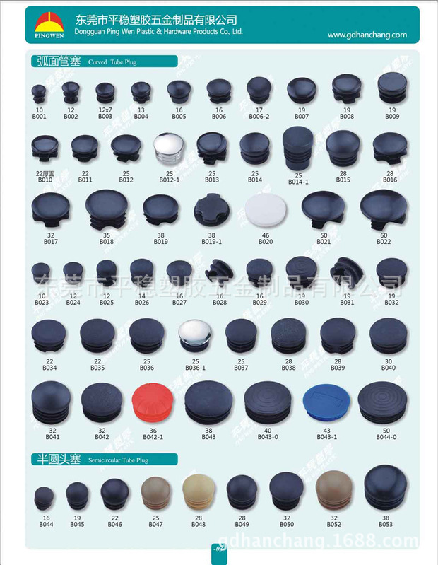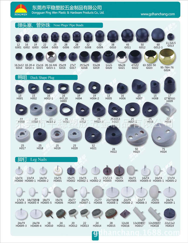 本公司主要生产各类家具塑料配件,如:塑料管塞,家具管塞,圆管塞,方管塞,椭圆管塞,管外套,椅子脚套,弧面管塞,环保管塞,可调脚,地钉,沙发脚,吸杯,堵头,排骨架床胶套,电镀管塞,膨胀胶料,垫片,脚垫,轮子等等多种产品。