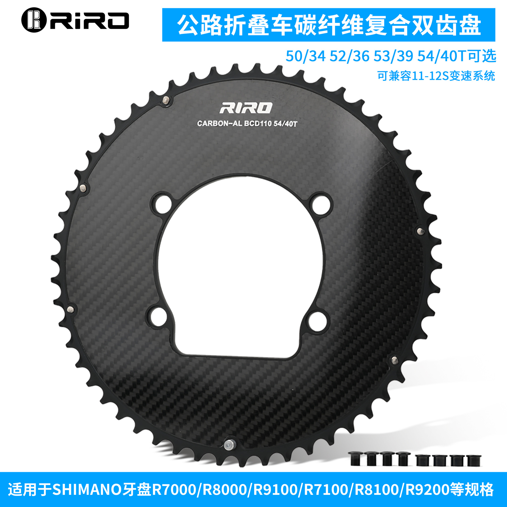 RIRO碳纤维复合齿盘牙盘片超轻双盘BCD110功率计封闭盘折叠车单盘