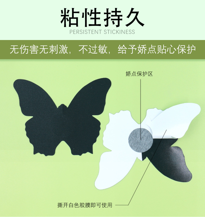スポット卸売りセクシー使い捨てステルス蝶胸貼りメーカー直販通気性サテン防凸点乳貼り