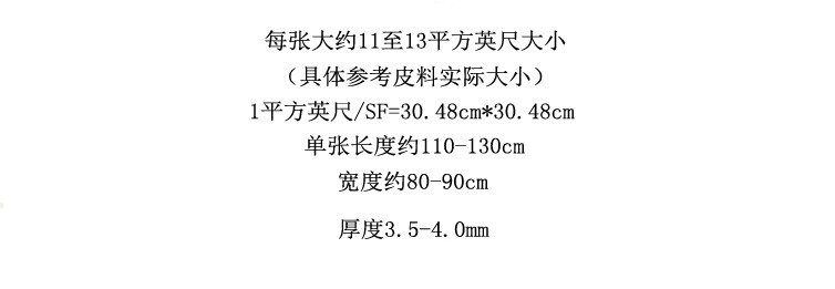因为真皮属于自然生长而成的原材料,从毛皮到成品皮通常需要很长的加工程序才能得到更好的使用,所以皮料都是呈不规则的形状。甚至于皮料的中间都会出现破洞,伤疤,烙印都属正常现象,这些真的是没有办法避免的。若是追求完美不能接受皮料存在的自然现象的买家请慎拍。真皮的量尺均有专业的红外测量器械计量,请不要简单的用传统的长乘宽去估算尺寸,那将会出现一定的误差。
