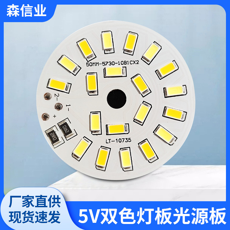 低压5V免驱动白暖光双色变光5V双色灯板30mm圆形led光源板批发