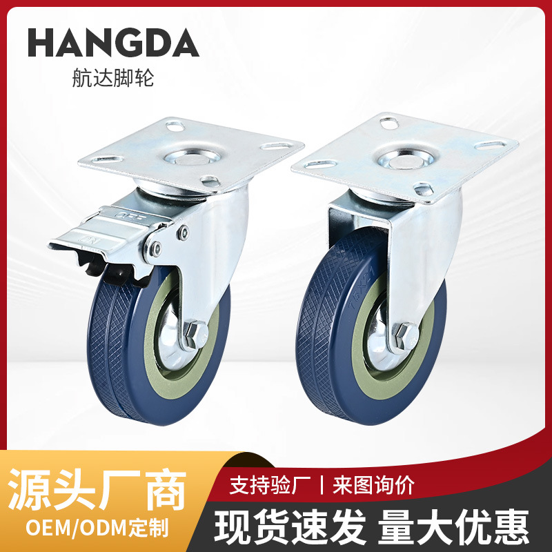 灰胶橡胶脚轮2寸3寸4寸5寸工业承重耐磨滑轮货架推车活动万向轮子