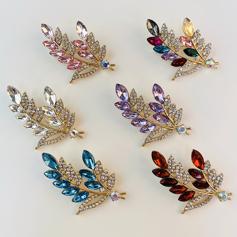 胸针树叶胸花衣饰镶钻复古别针精致满钻水晶配饰山茶花礼服徽章