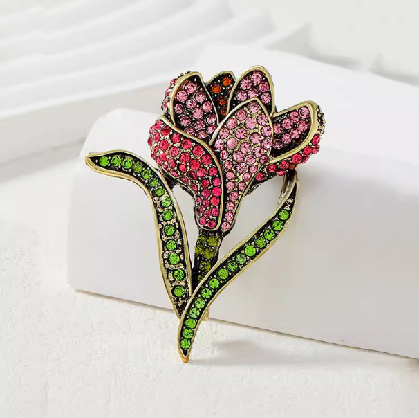 复古郁金香水钻胸针宫廷服装固定胸花女防走光领口别针百搭配饰