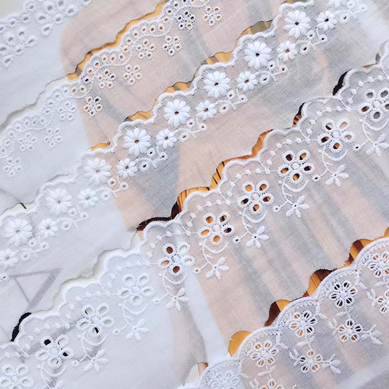 人気スポット綿布刺繍レース漂白子供服綿レース穴抜きレースdiy服装補助材料