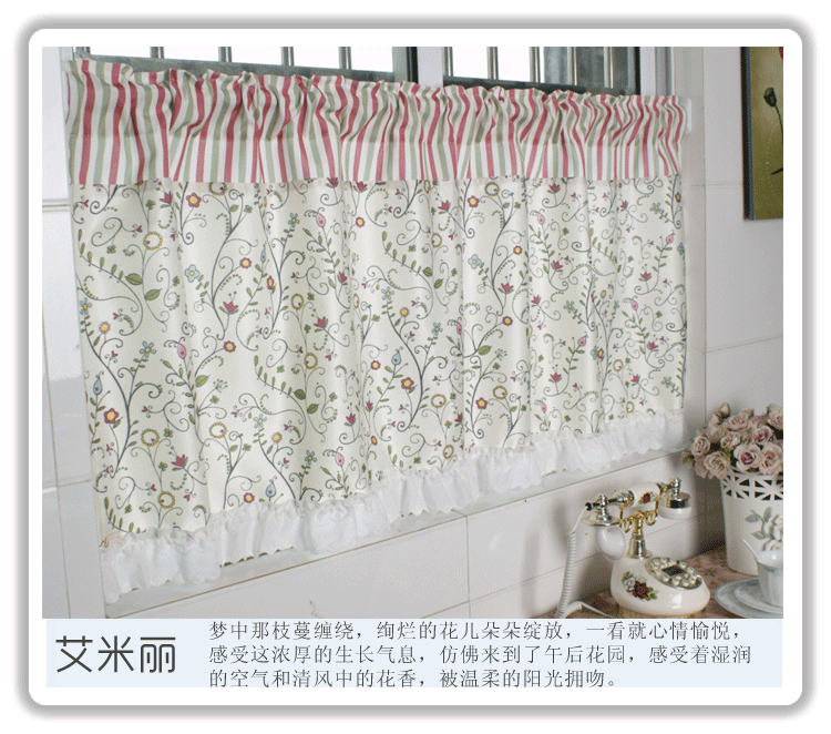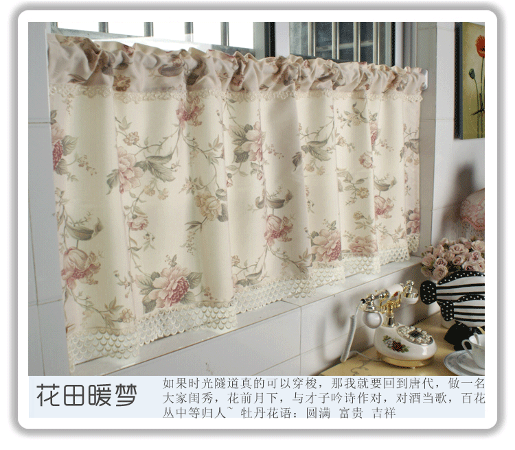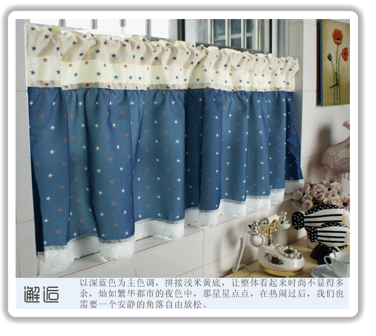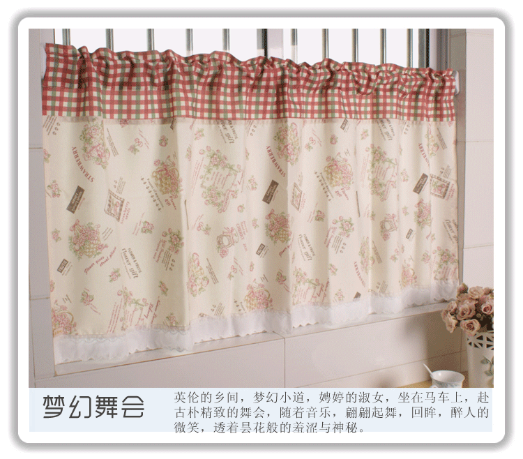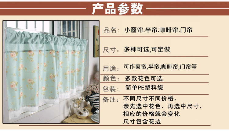 包含:一个半帘或称咖啡帘 (不含罗马杆或其它杆子,穿孔可适用杆子直径2.5厘米以下)