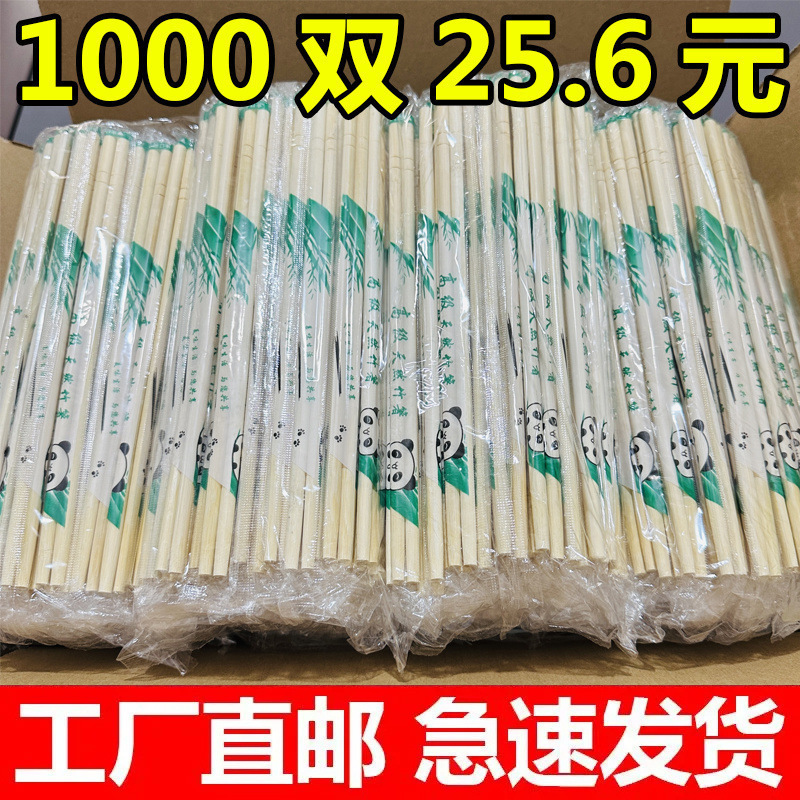 一次性筷子独立包装整袋商用竹筷饭店快餐外卖圆筷加厚熊猫款便携