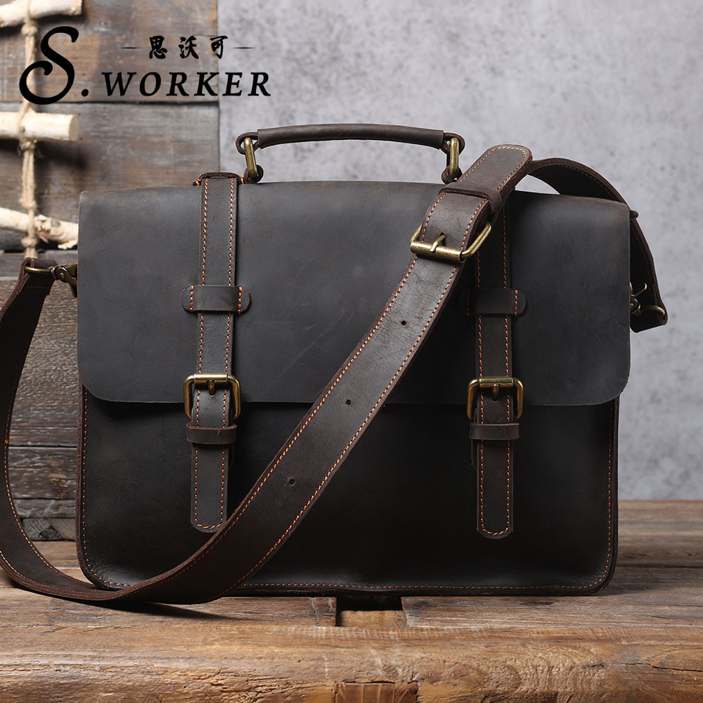 复古疯马皮横款公文包