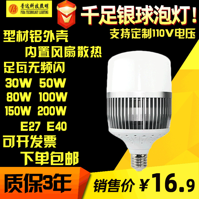 LED電球ライトハイパワー電球ライト千足銀片足瓦電球50W 100W 150W 200W