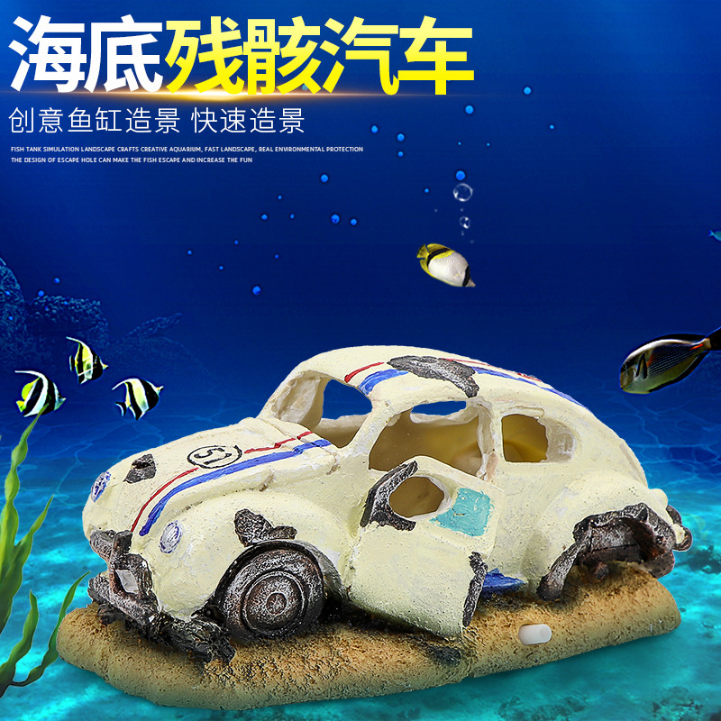 小さい車の置物の水槽の装飾品はバスの海底の残骸の水槽の装飾品をシミュレーションします。