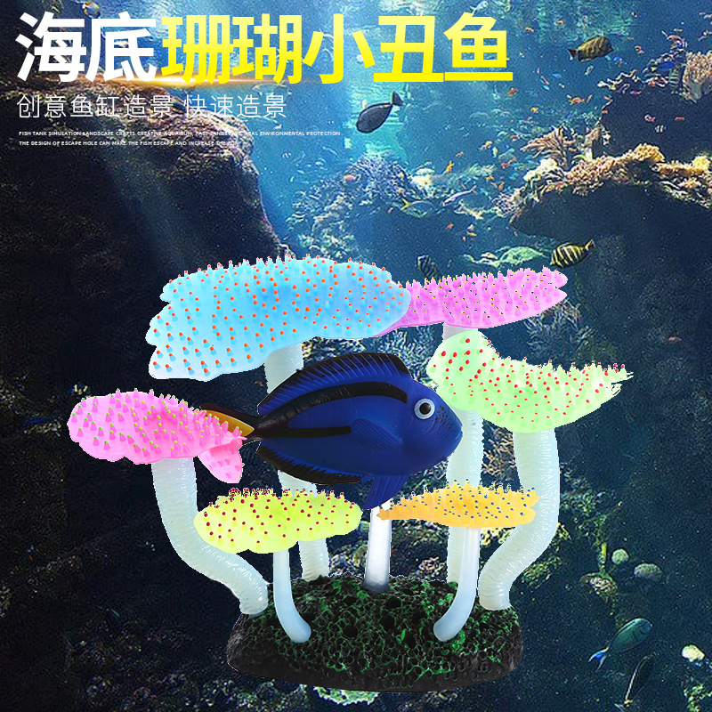 水槽の装飾品水槽のシリカゲルのサンゴのアネモネの小さい醜い魚のシリカゲルのサンゴのシミュレーションの海藻の装飾品
