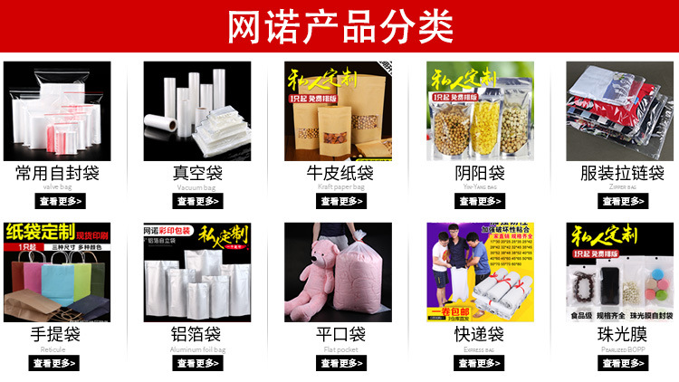 | 7*10厘米*12丝 | 2.10元/100只 | 0.084kg | 100g | 22*32厘米*12丝 | 18.0元/100只 | 0.85kg | 2900g | |