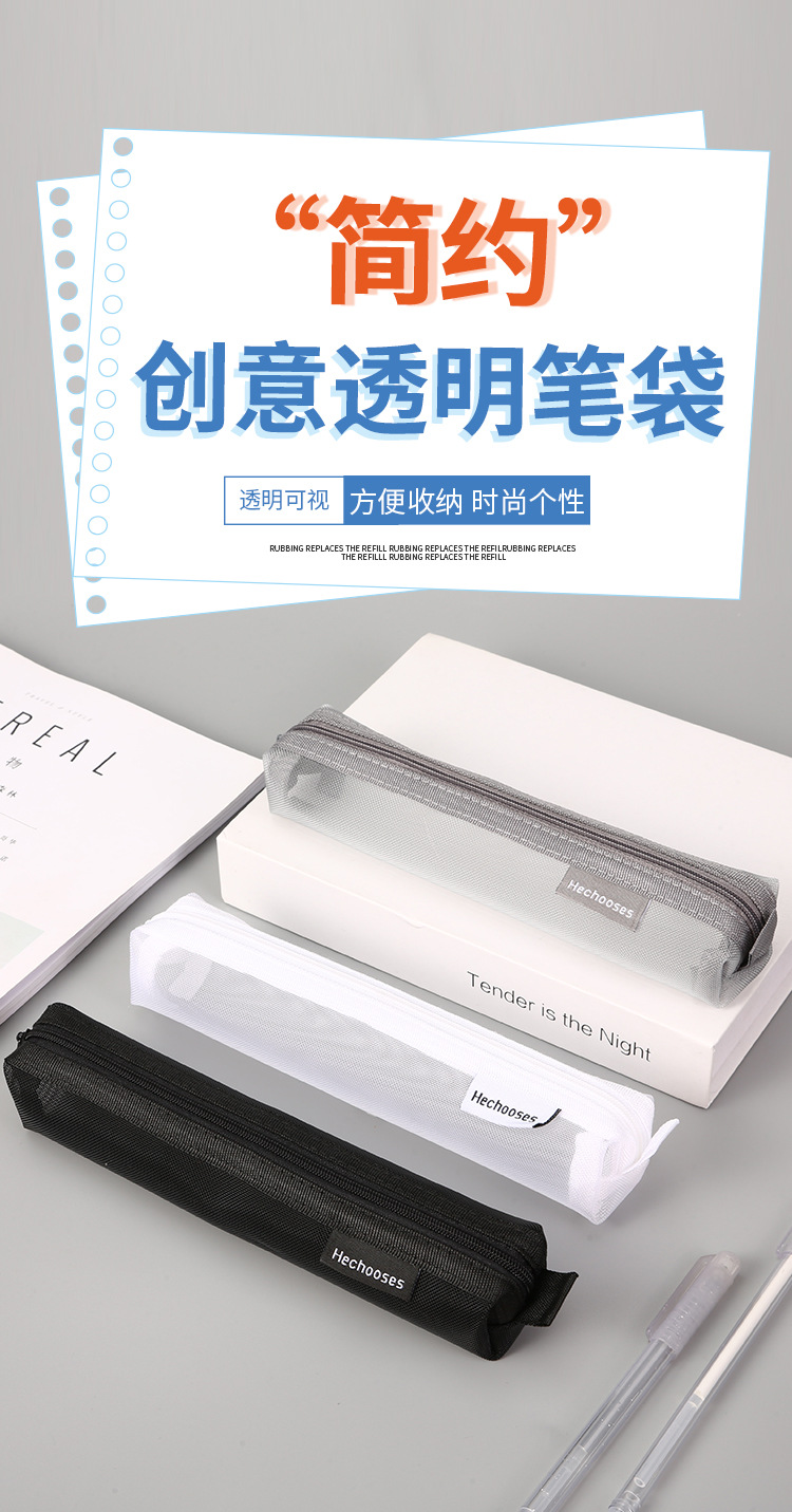 シンプル透明ネット筆袋収納袋学生試験専用携帯筆袋大容量文房具袋卸売り
