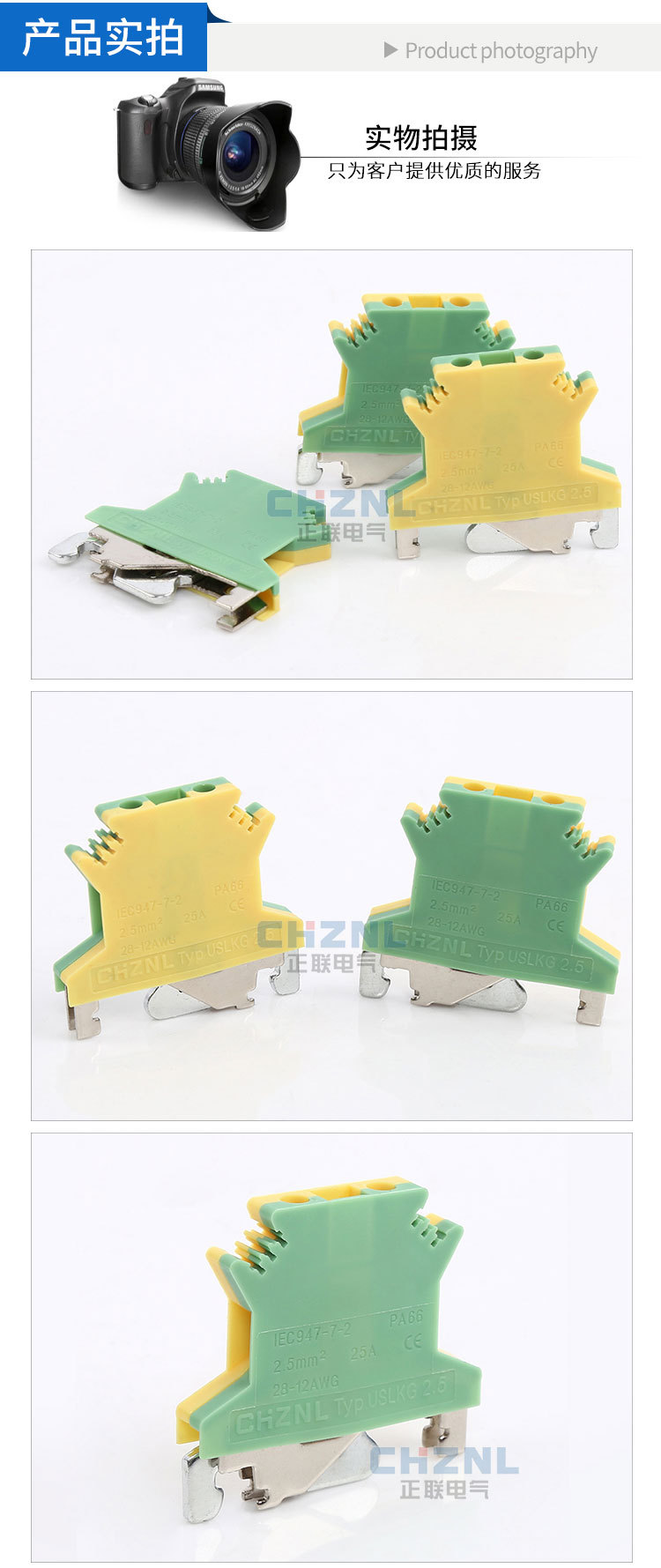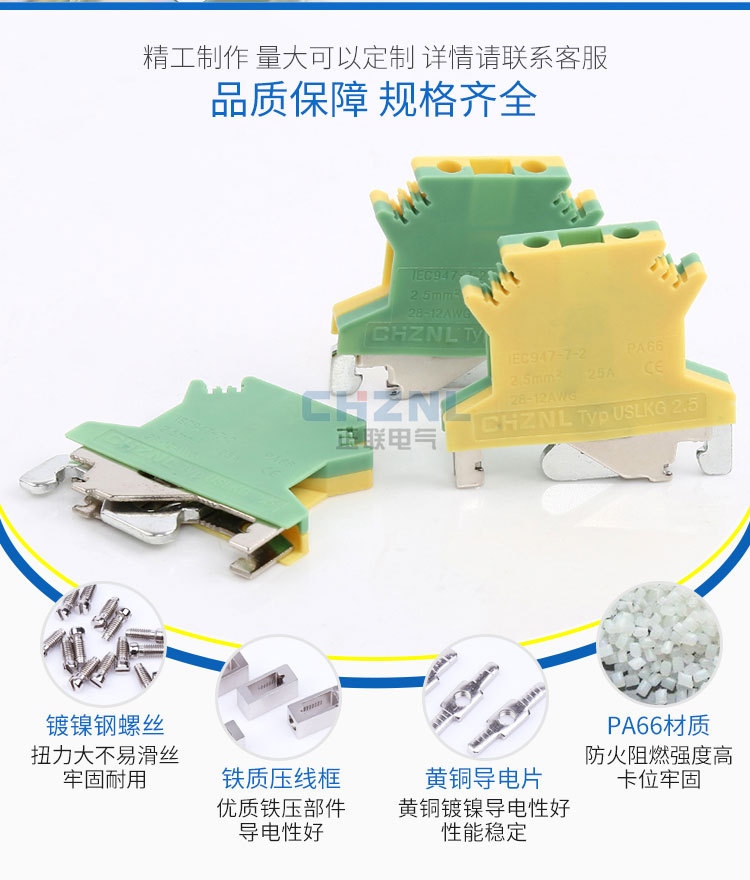 Uslkg2.5レール式黄緑通用接地端子uk2.5b配線端子台
