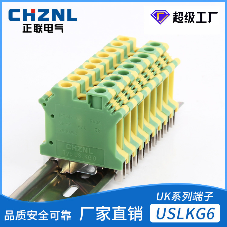 Uslkg 6レール式黄緑通用接地端子uk6n端子台