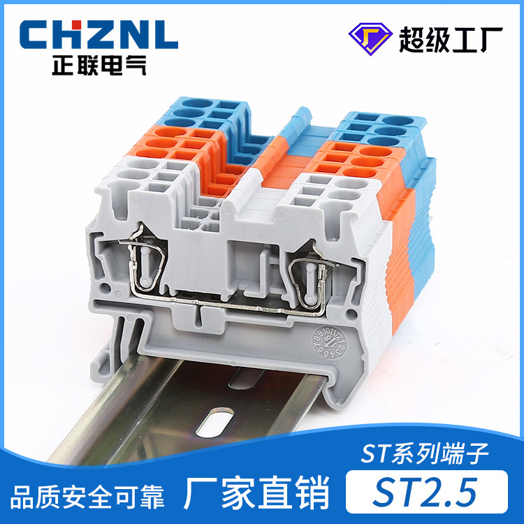 レール式ST2.5端子4/6/10/16平方銅ガイドスプリング式二重端子列PE