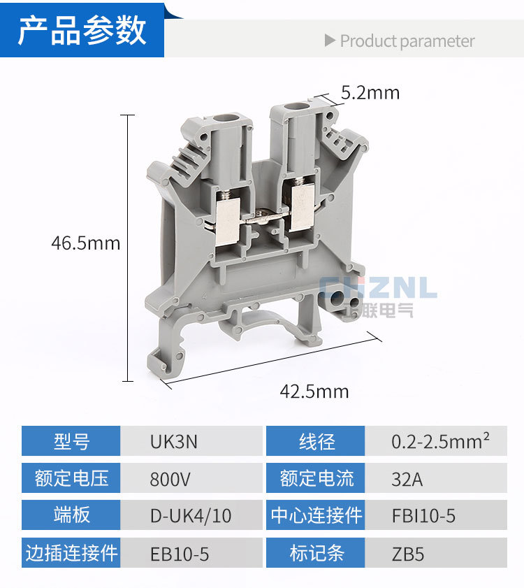 UK3N端子純銅部品難燃レール式電圧UK2.5MM平方UK端子台