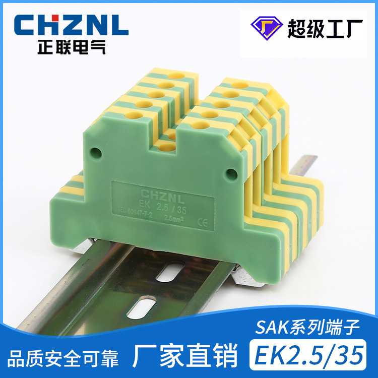 Ek2.5/35アース端子黄緑色通用配線端子台