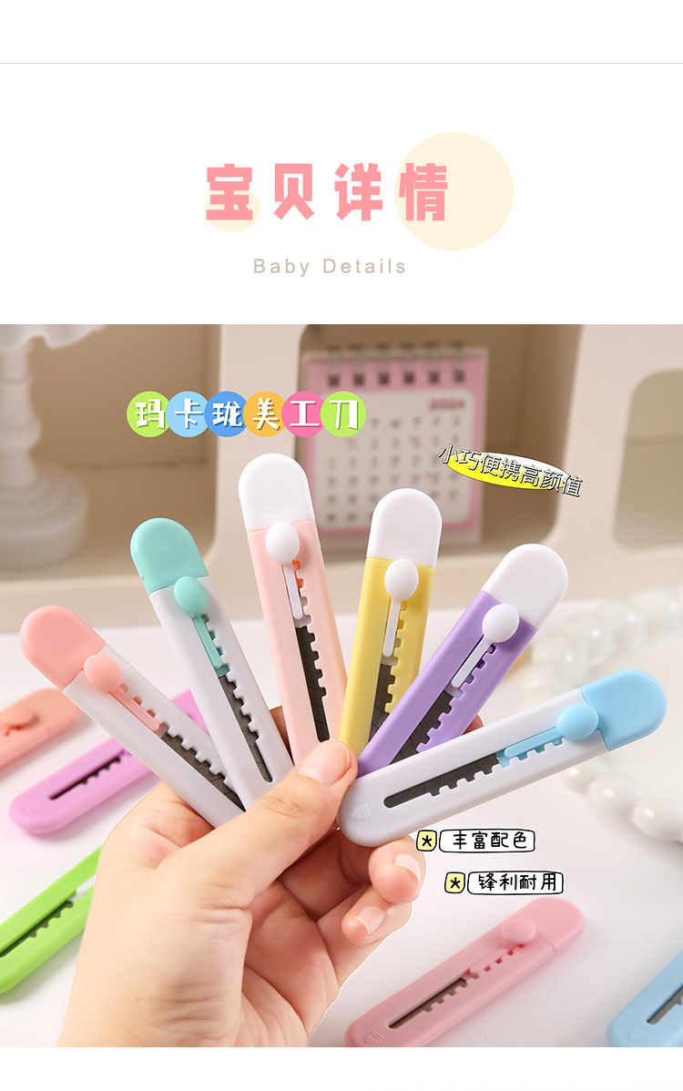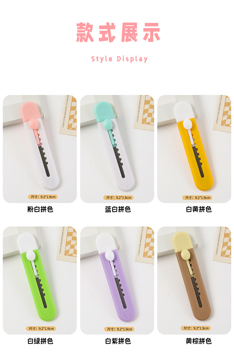 香港昇かわいいキャンディー色の美工刀学生が宅配便を分解して小刀を開梱してミニ携帯の手製裁断刀卸売りをします。