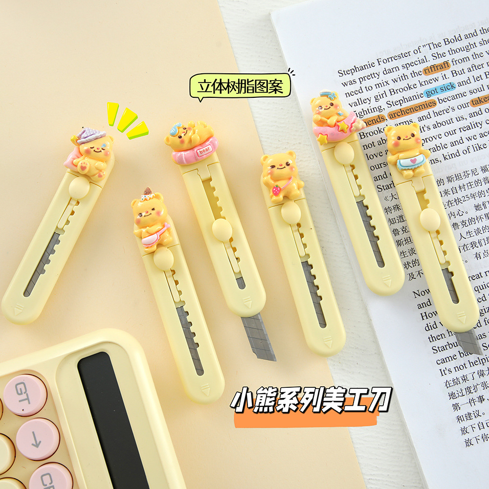 卡通可爱小熊美工刀学生用迷你便携裁纸刀文具开箱神器拆快递小刀