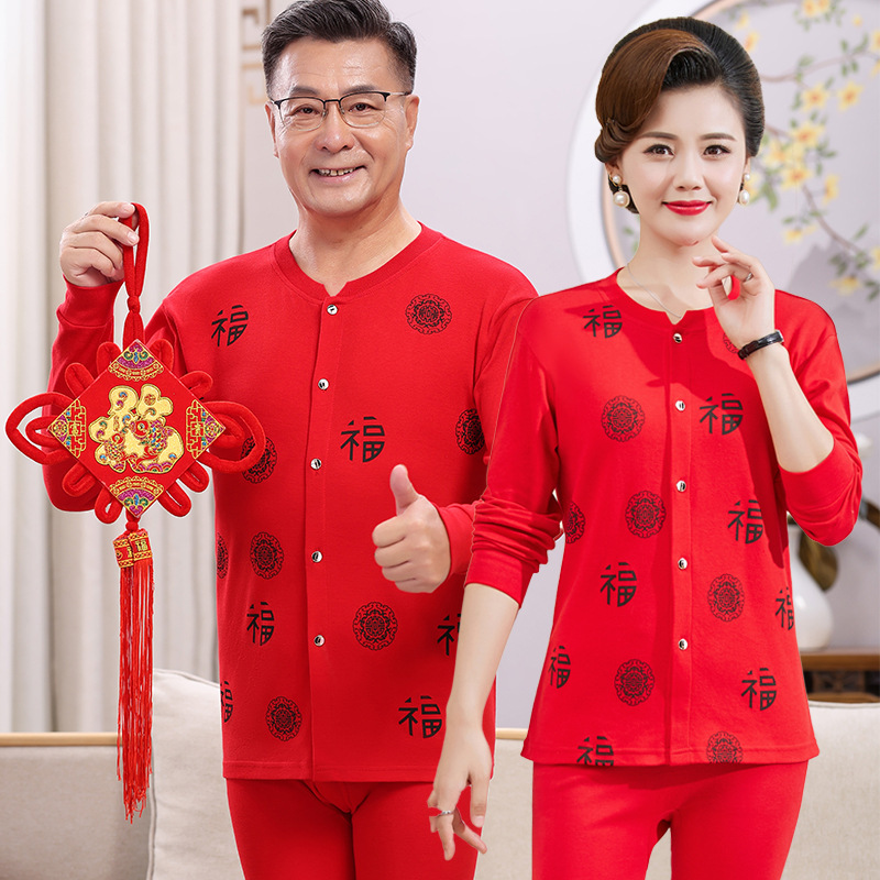 本命年秋衣秋裤套装纯棉中老年人大红男龙年全棉开衫套装保暖内衣
